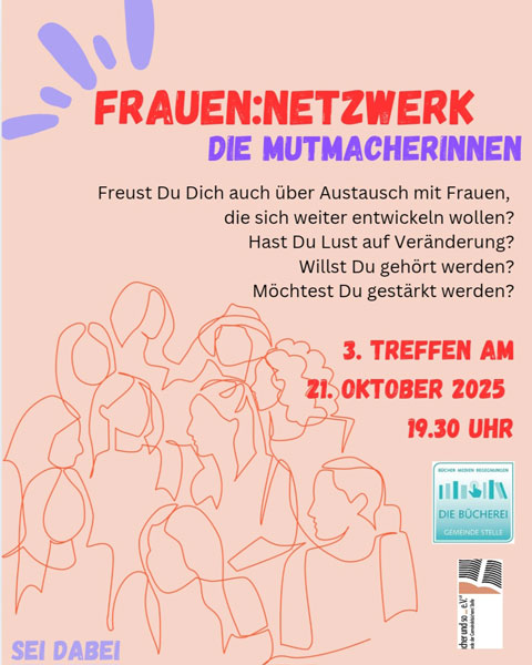 Herzliche Einladung zu unserem dritten Treffen am 21. Oktober 2025 um 19.30 Uhr in der Bücherei.