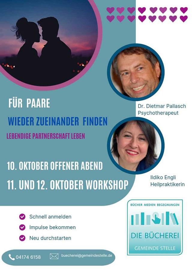 11. und 12. Oktober., Paar-Workshop jeweils 10 – 13 und 14 – 17 Uhr
